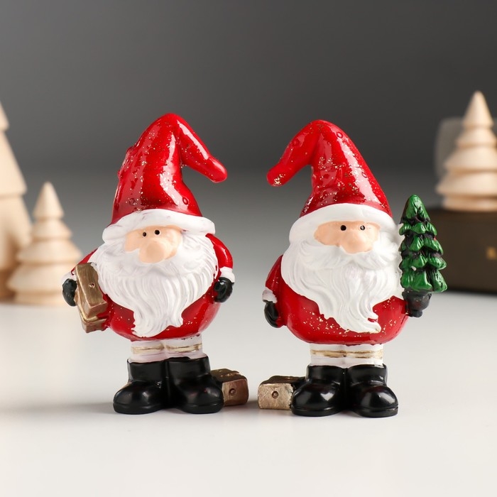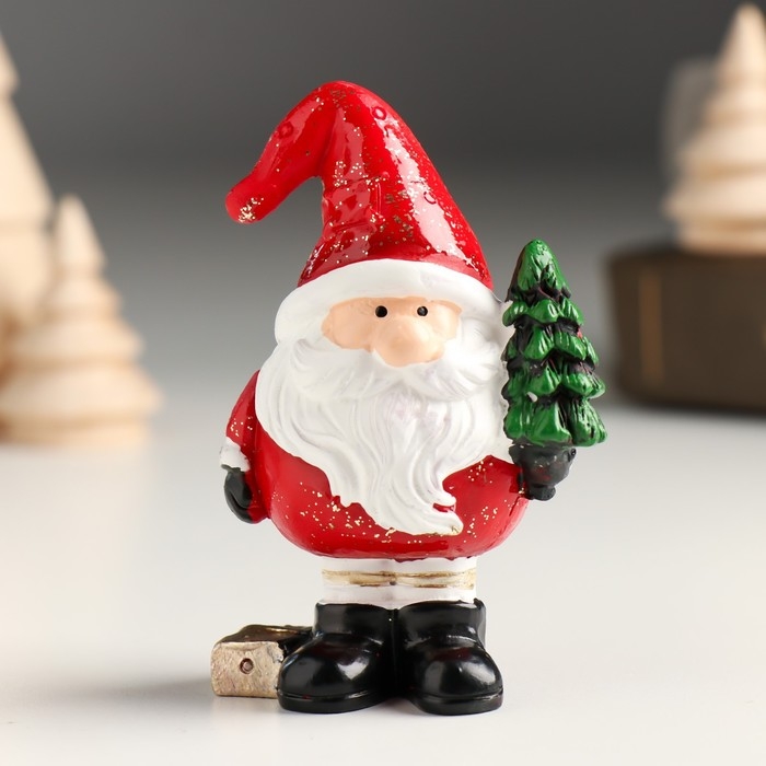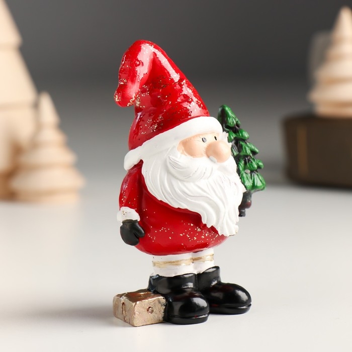 Сувенир полистоун "Дед Мороз в красном колпаке с ёлочкой/подарком" МИКС 5х3,8х8,2 см