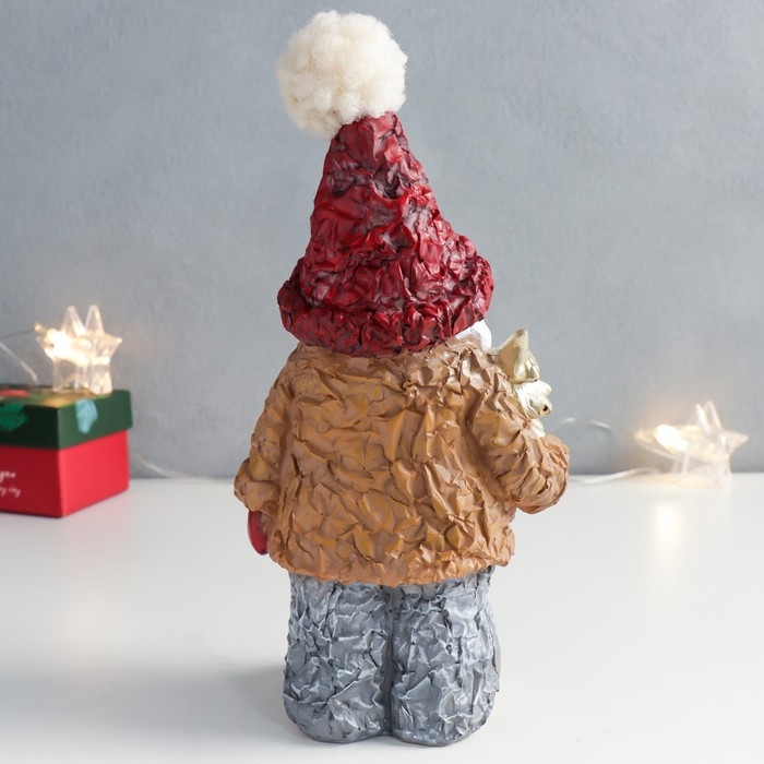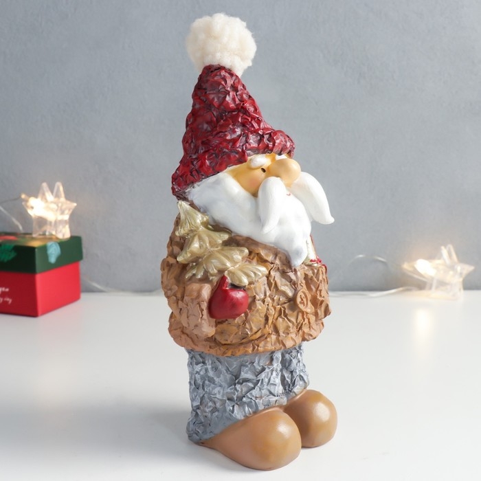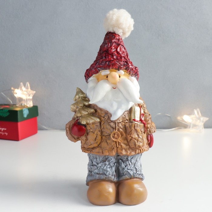 Сувенир полистоун "Дед Мороз в пиджачке с ёлочкой и подарком" 10,5х8х20,5 см