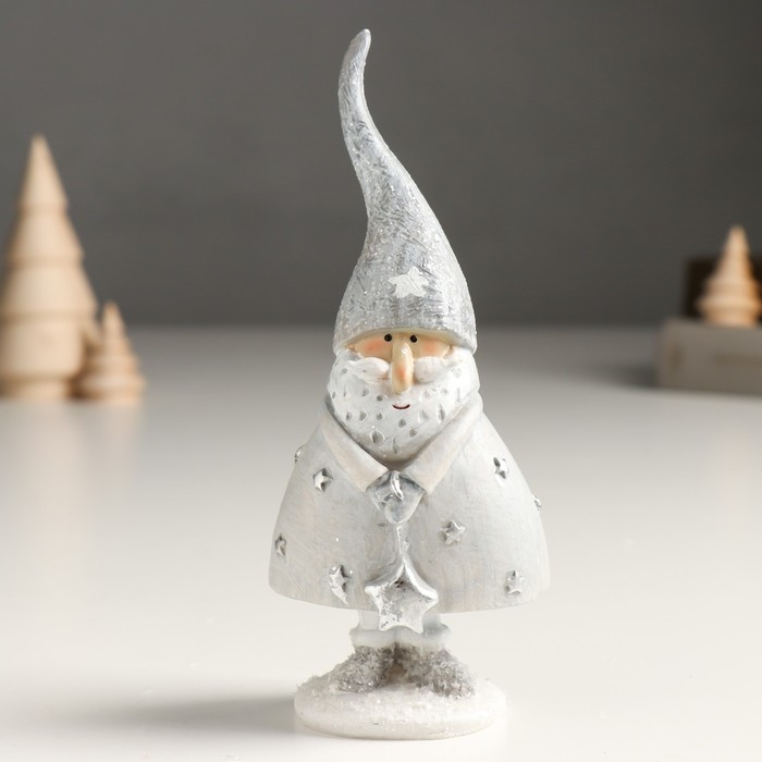 Сувенир полистоун "Дед Мороз в серебристом наряде, со звёздочкой" 5х6,5х15,5 см