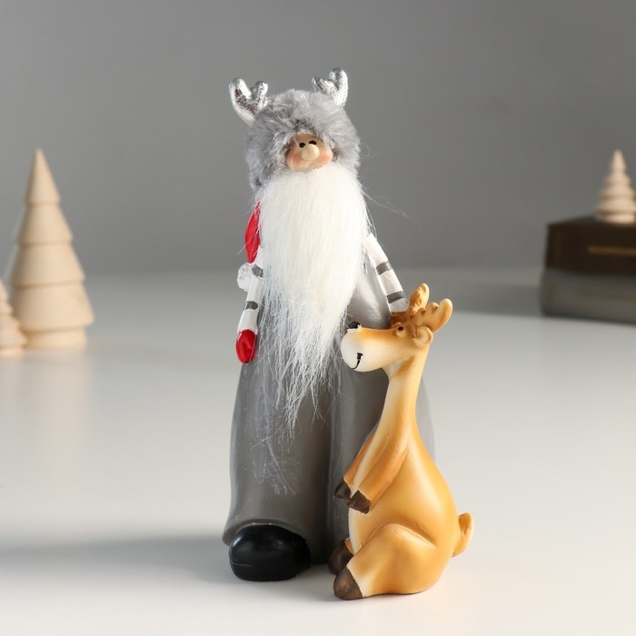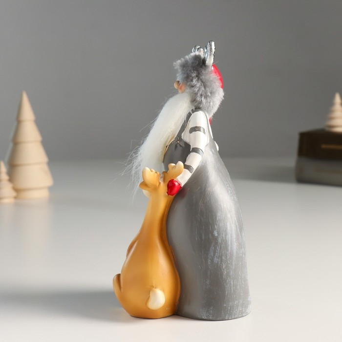 Сувенир полистоун "Дед Мороз в шапке с рожками и помощником оленем" 8,5х8х17 см