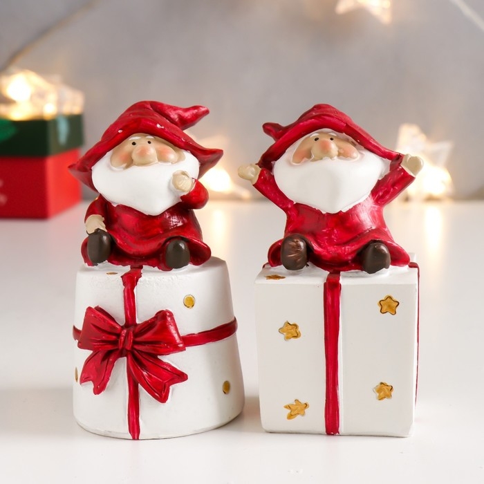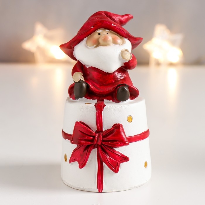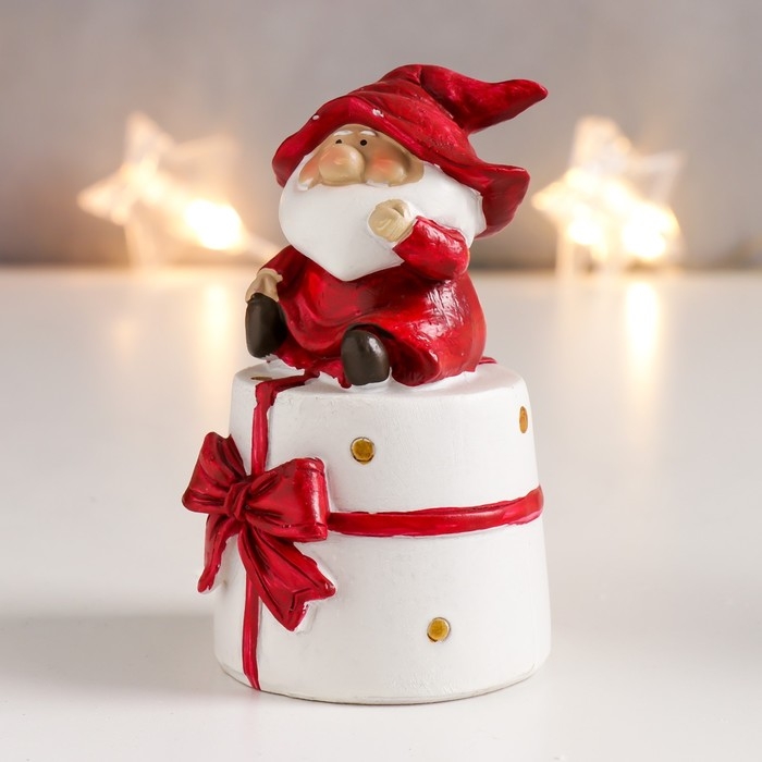 Сувенир полистоун "Дедушка Мороз в колпаке гнома на подарке"МИКС 9х5х4 см