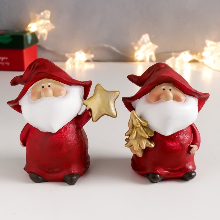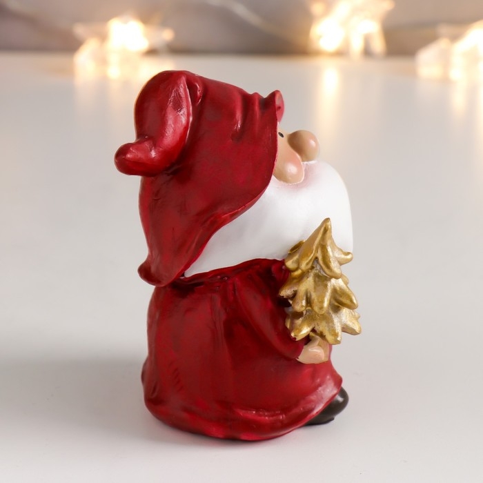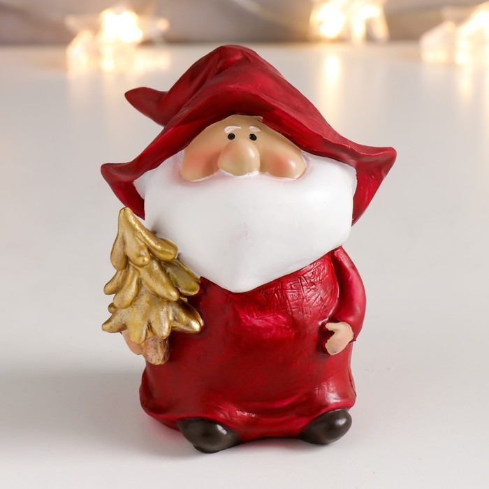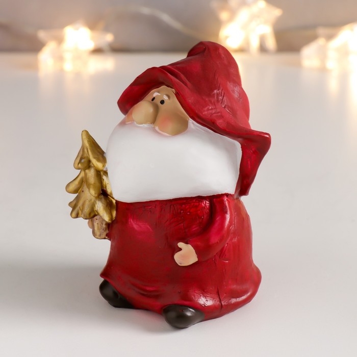 Сувенир полистоун "Дедушка Мороз в колпаке гнома с ёлкой/звездой" 9х9,5х4 см