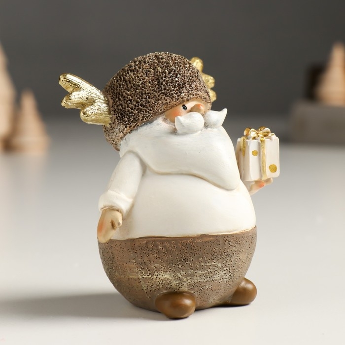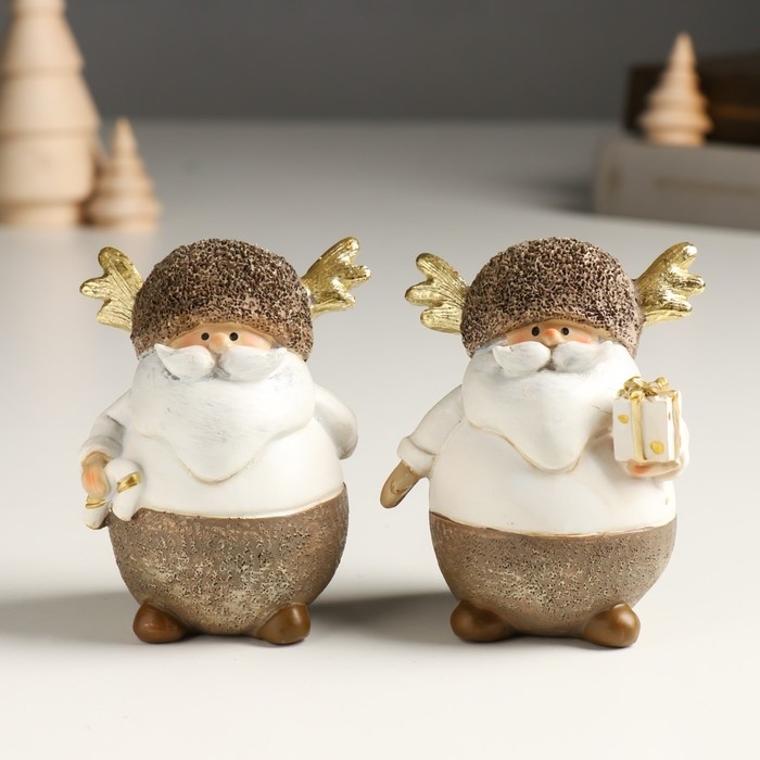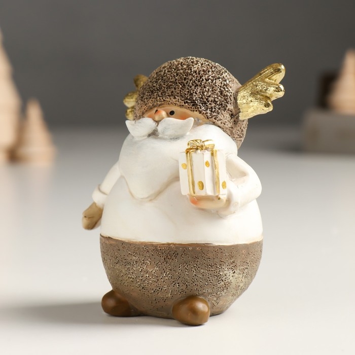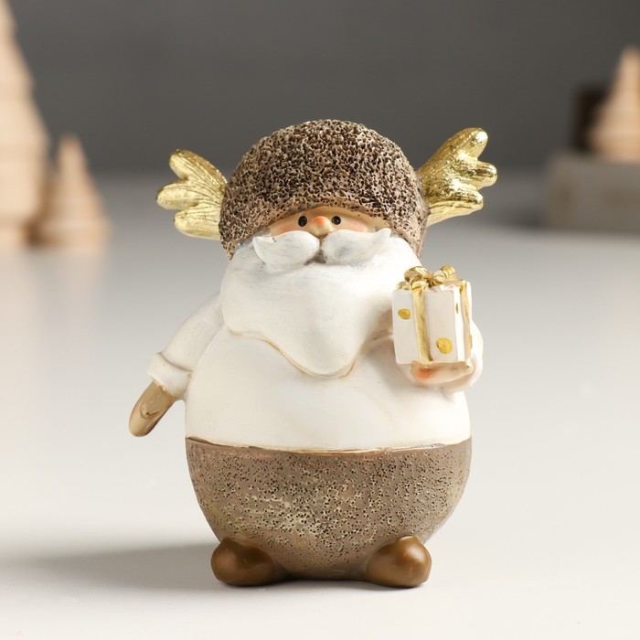 Сувенир полистоун "Дедушка Мороз в шапке с рожками, с леденцом/подарком"золото МИКС 8х5х7 см 94988