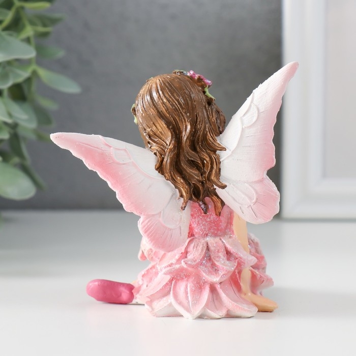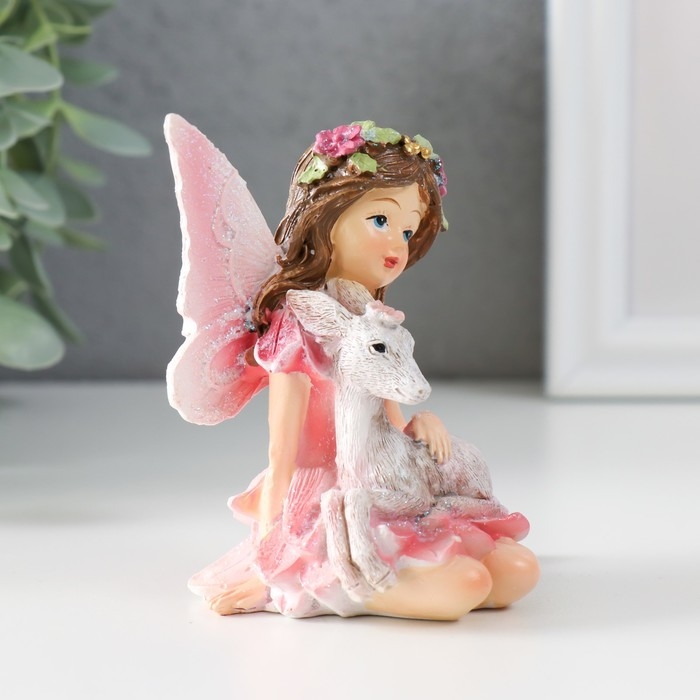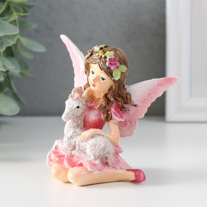 Сувенир полистоун "Девочка-бабочка с козликом" розовые крылья 8,5х6х9 см