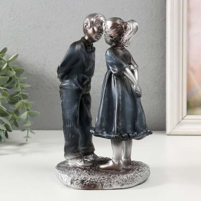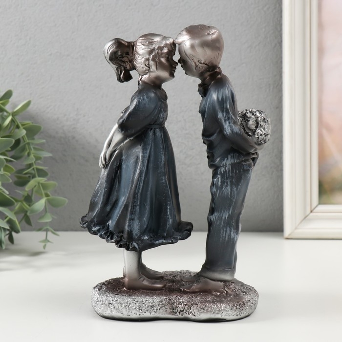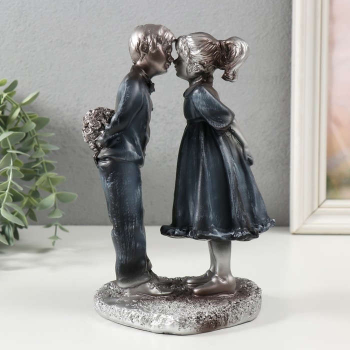Сувенир полистоун "Девочка и мальчик с букетом" серебро 15,5х11,2х21 см