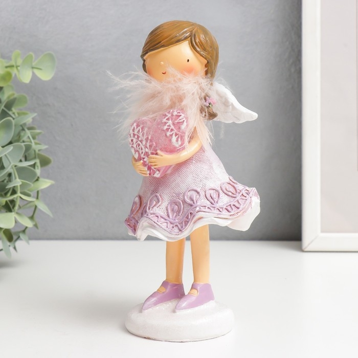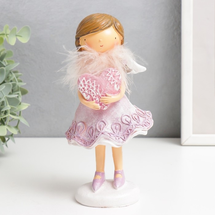 Сувенир полистоун "Девочка в сиреневом платье с сердечком" 9х8х18,5 см