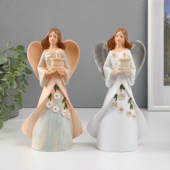 Сувенир полистоун "Девушка-ангел с тортом в руках" МИКС 7х11х21 см