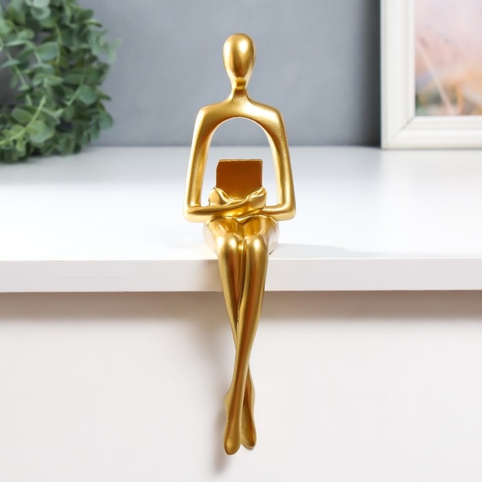Сувенир полистоун "Девушка с книгой" золото 23х6,8х9,6 см