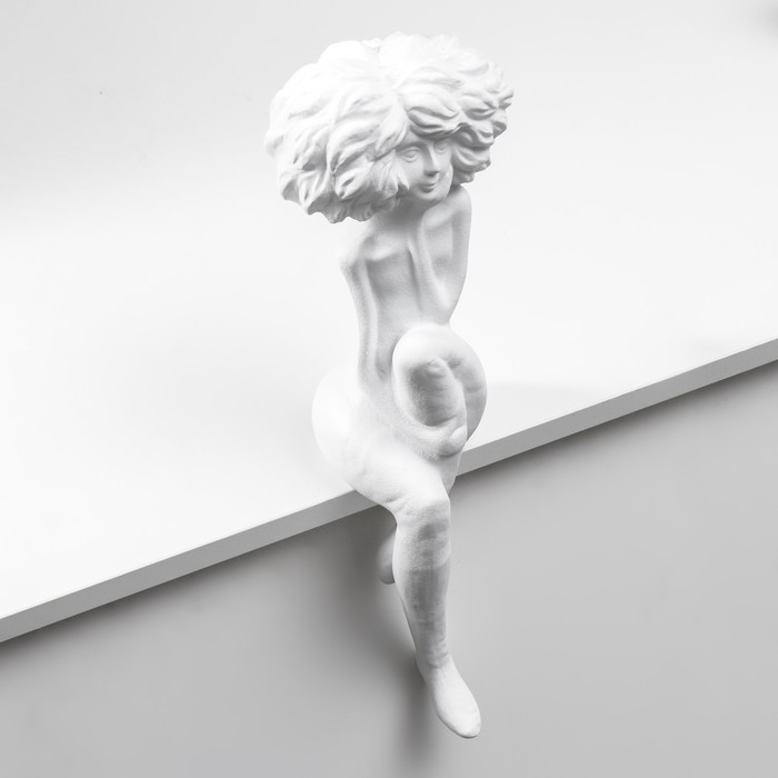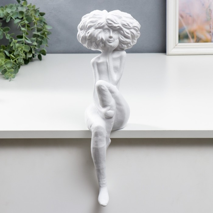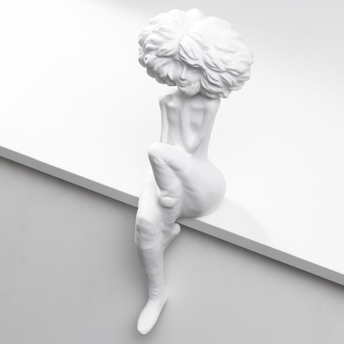 Сувенир полистоун "Девушка с пышной причёской, задумчивая" белая 40х12х13,5 см