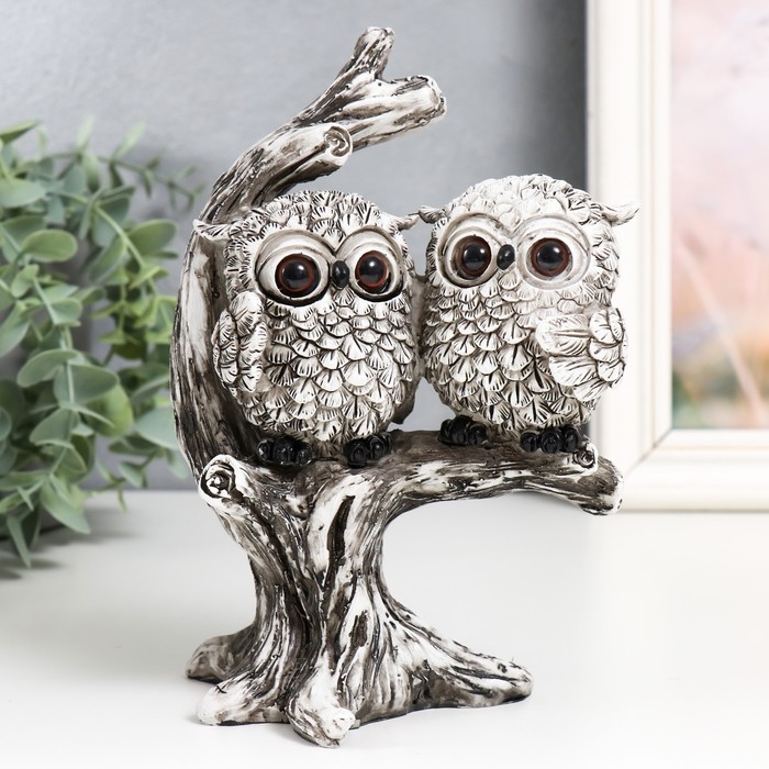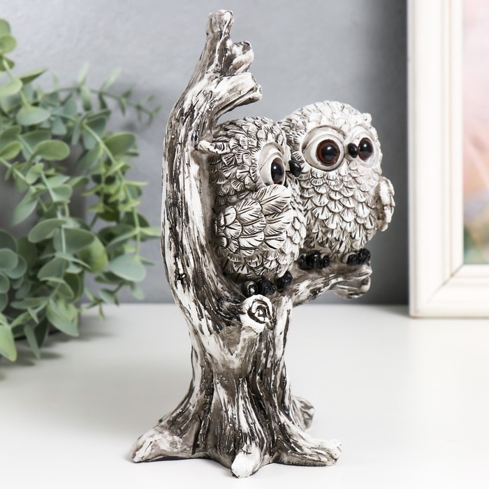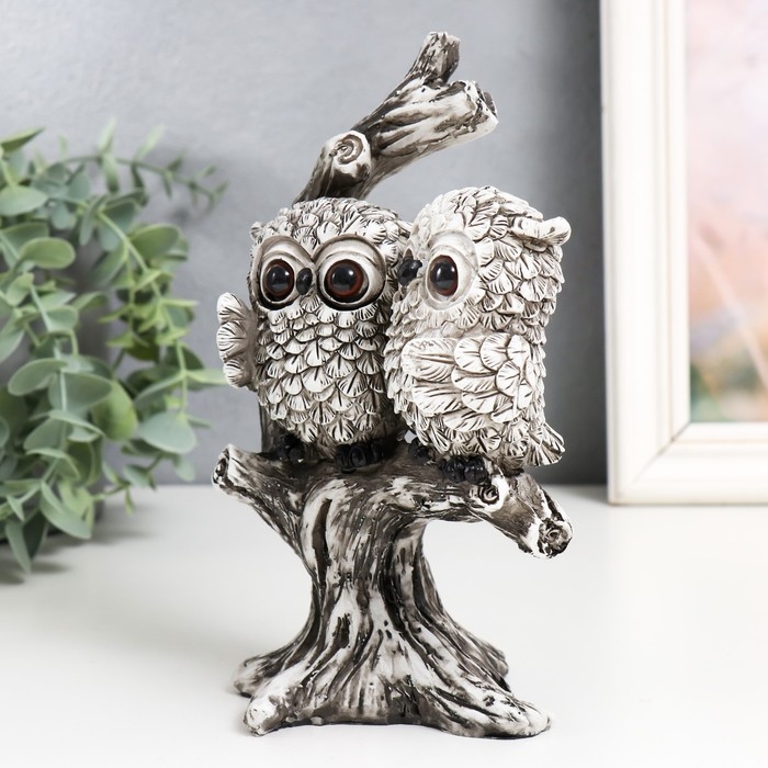 Сувенир полистоун "Два филина с большими глазами на дереве" 13х9,8х19 см