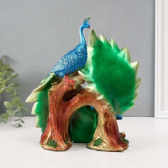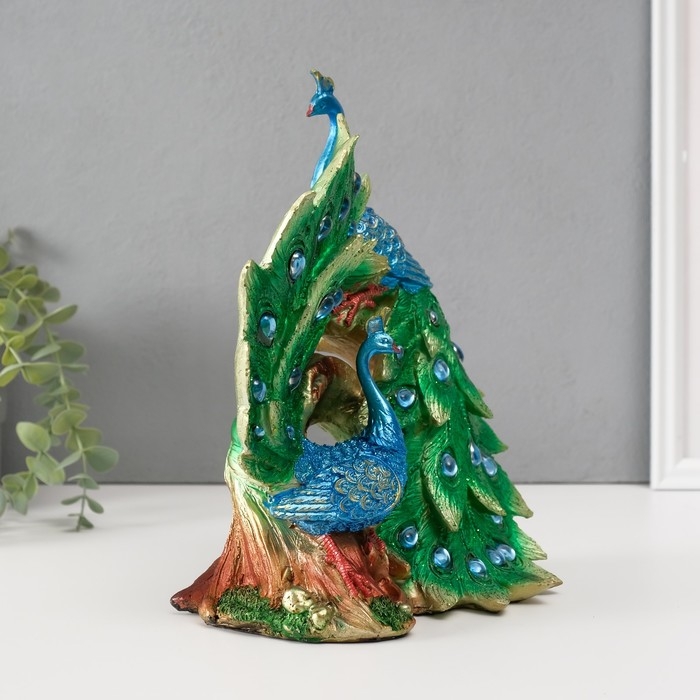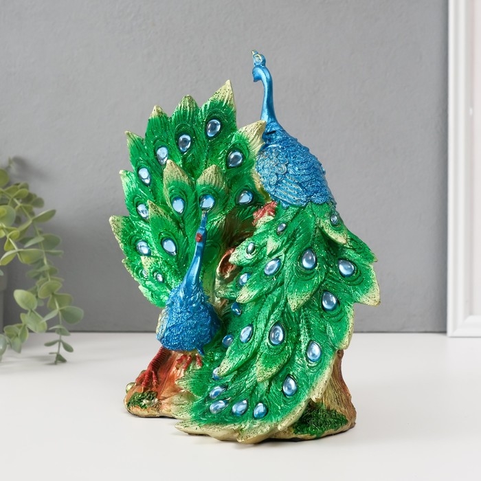Сувенир полистоун "Два зелёных павлина" стразы 25,5х14х24 см