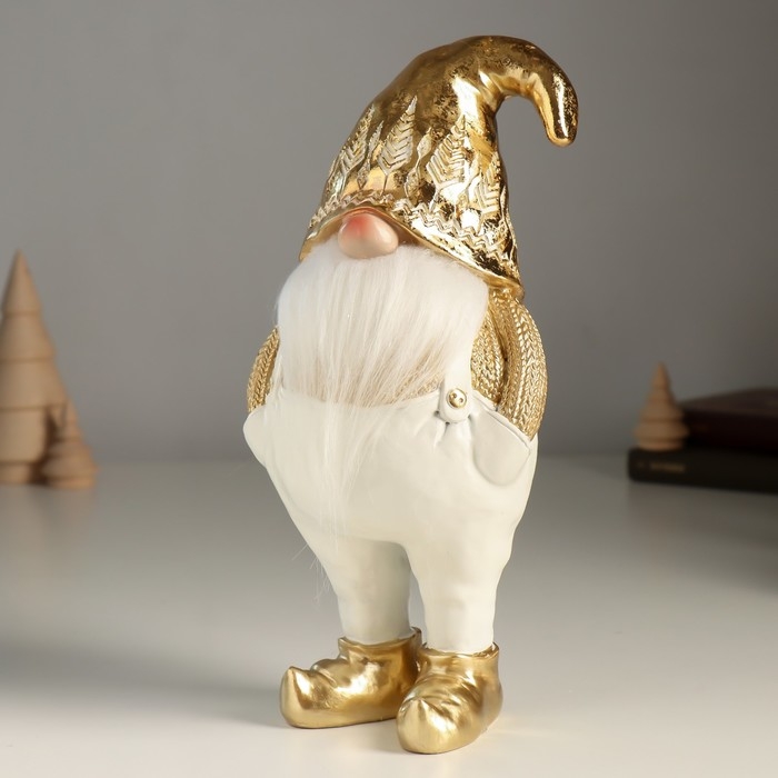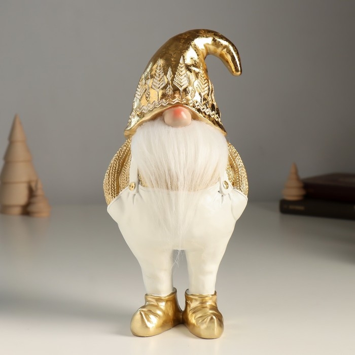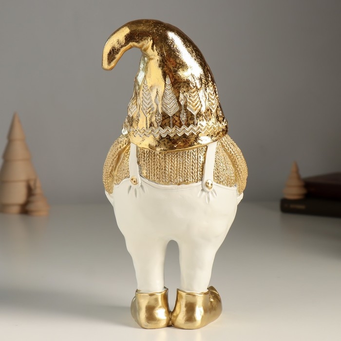 Сувенир полистоун "Гном в белых штанах, золотом свитере и колпаке" 11х9х23 см