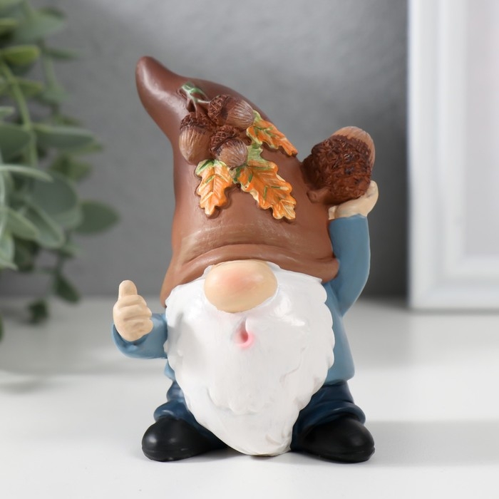 Сувенир полистоун "Гномик с жёлудем" 7,5х5х10 см