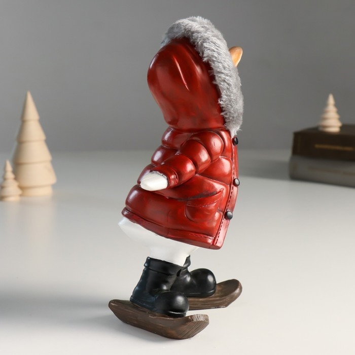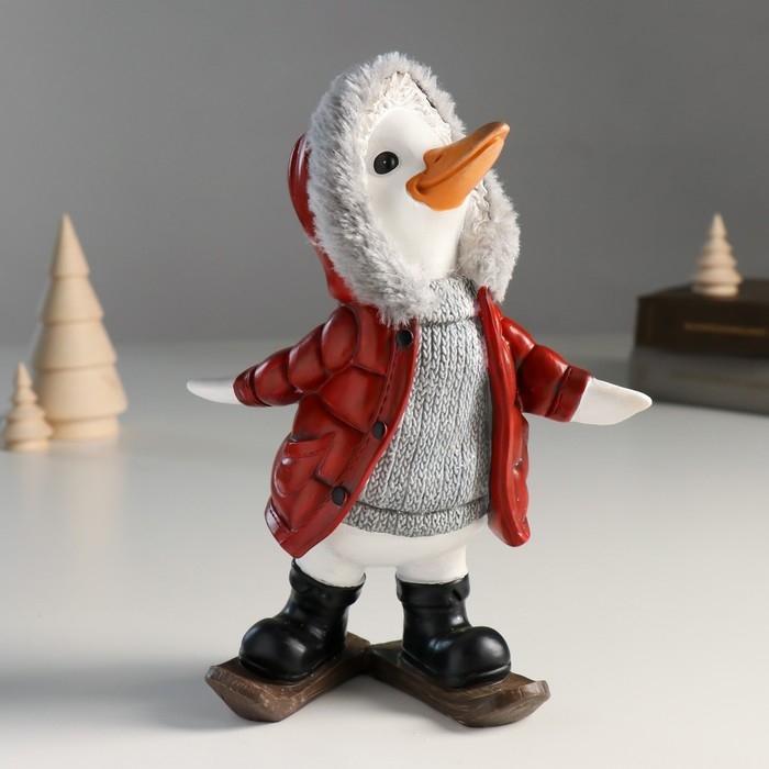 Сувенир полистоун "Гусь в пуховике с капюшоном на лыжах" 8х14х20,5 см