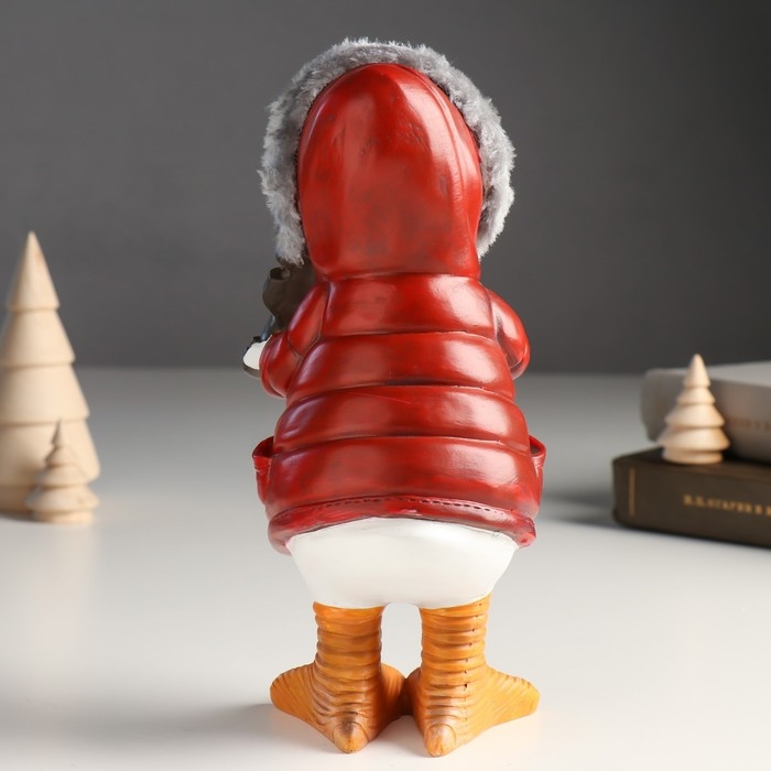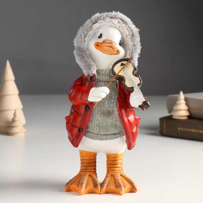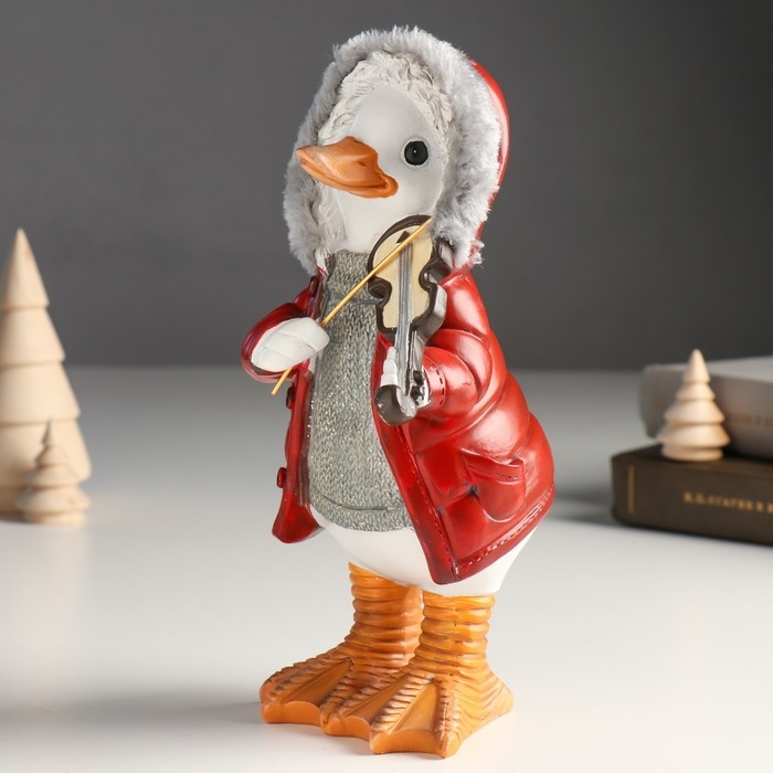 Сувенир полистоун "Гусь в пуховике с капюшоном со скрипкой" 11,5х9х21 см