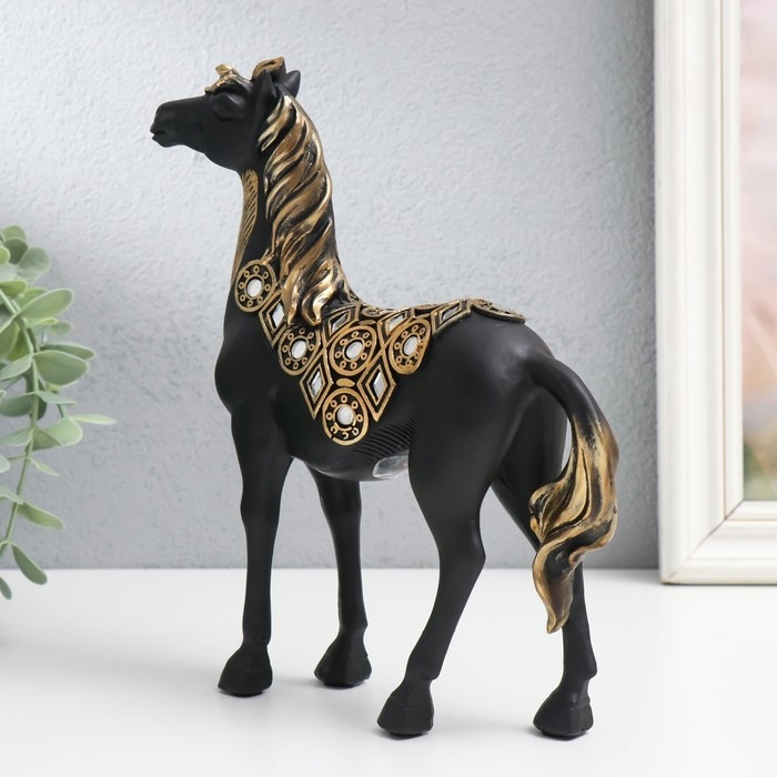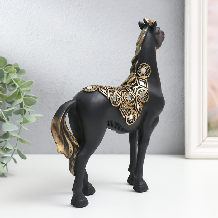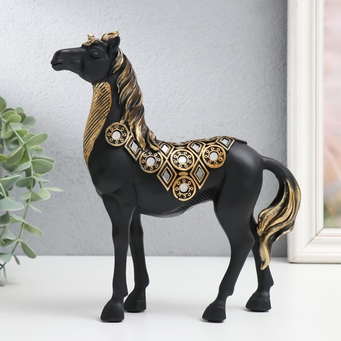 Сувенир полистоун "Императорский чёрный конь, с зеркалами" 19х5,5х21,5 см