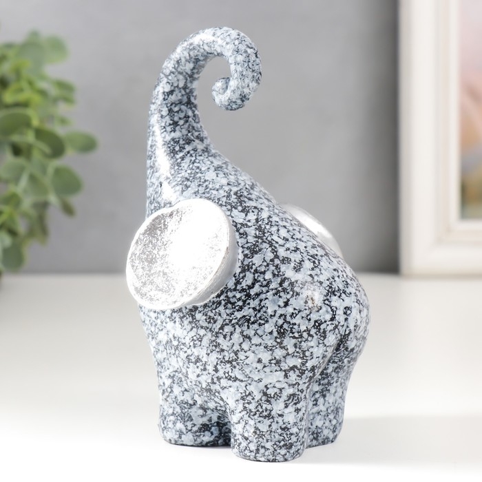 Сувенир полистоун "Каменный слонёнок с серебристыми ушами" 8х9,5х13 см