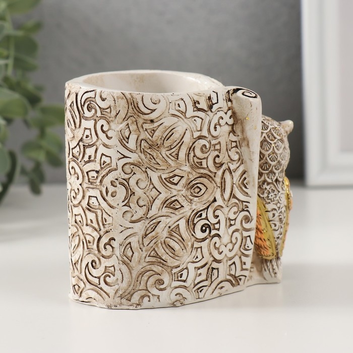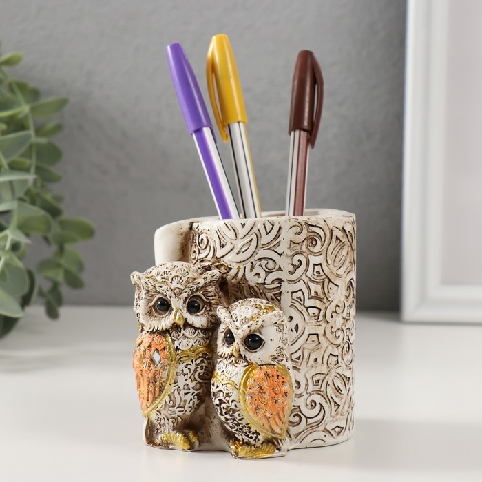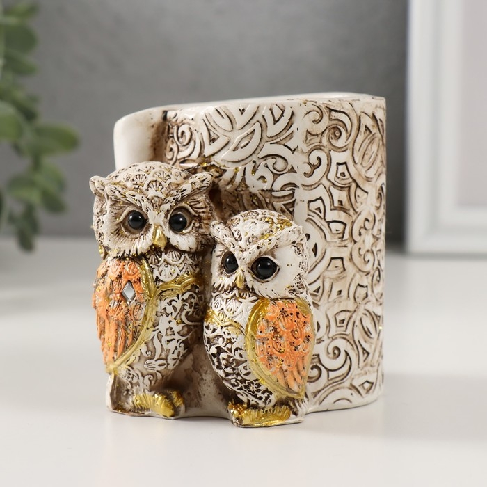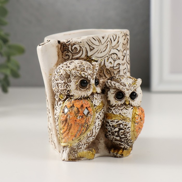 Сувенир полистоун карандашница "Филины с орнаментом" 6,5х8,5х9 см