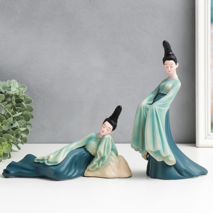Сувенир полистоун "Китайские красавицы" набор 2 шт 13,5х25х10 26х16х9,5 см