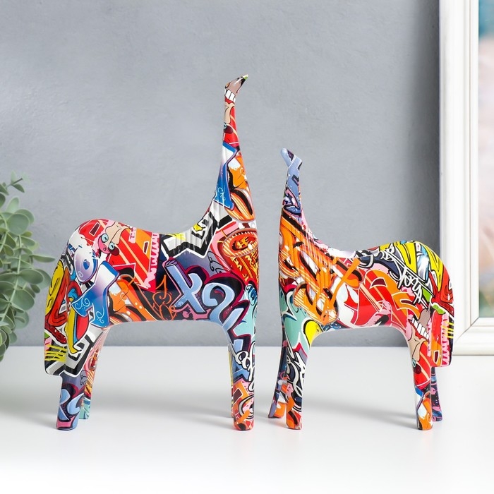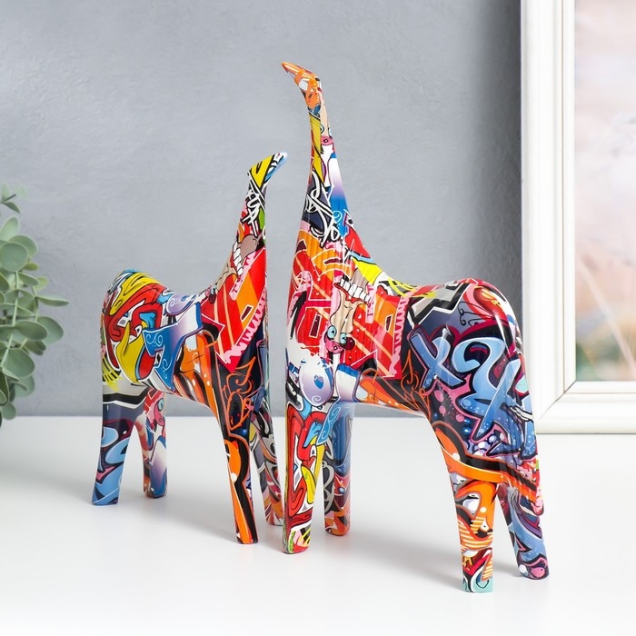 Сувенир полистоун "Кони" граффити набор 2 шт 14х5х21,5; 6х16,3х26,5 см