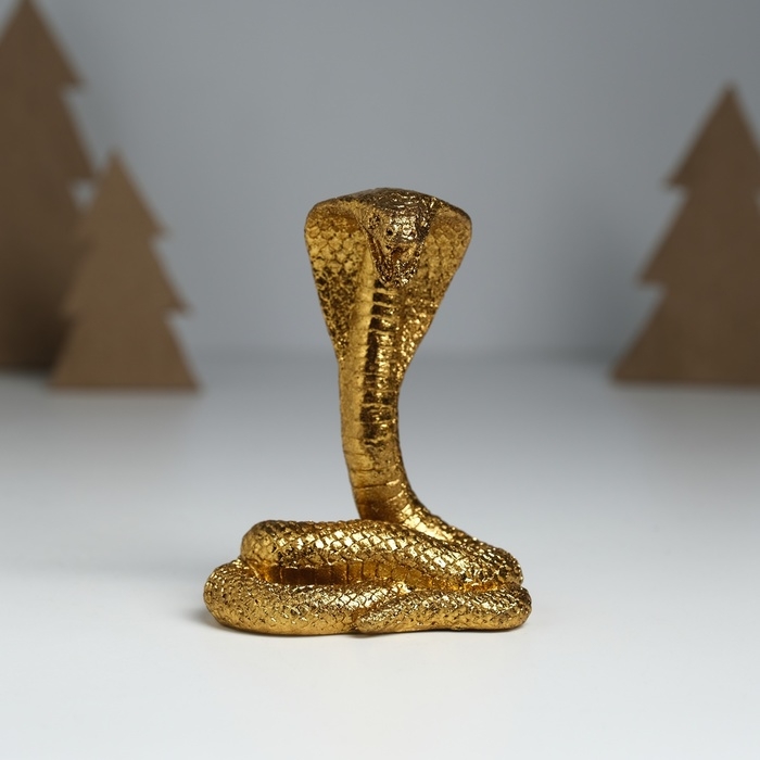 Сувенир полистоун "Королевская кобра" золото 7х5х8,7 см