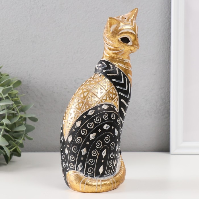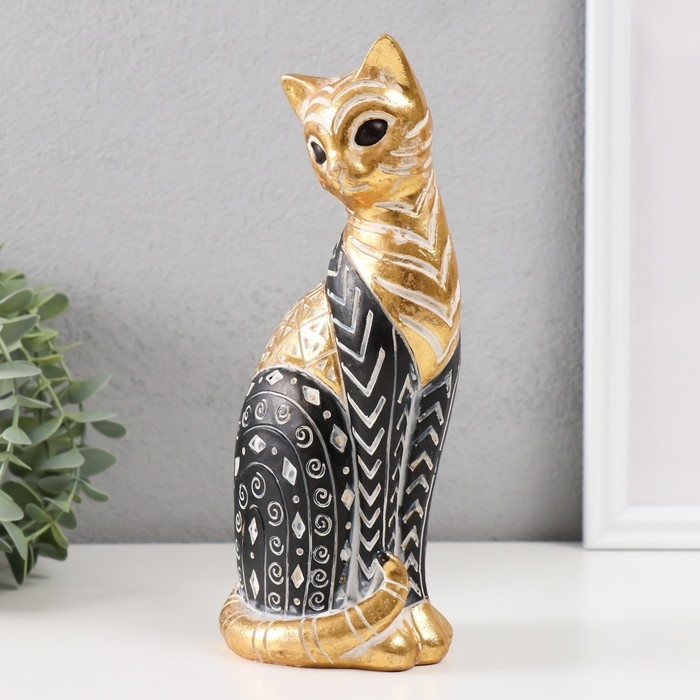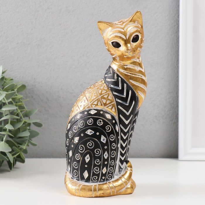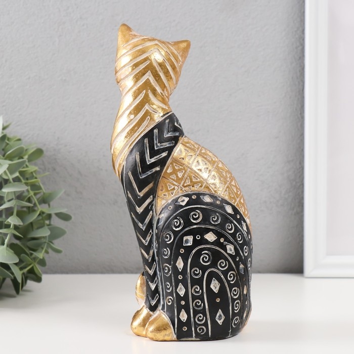 Сувенир полистоун "Кошка с узорами, сидит" золото с чёрным 10,5х8х22 см