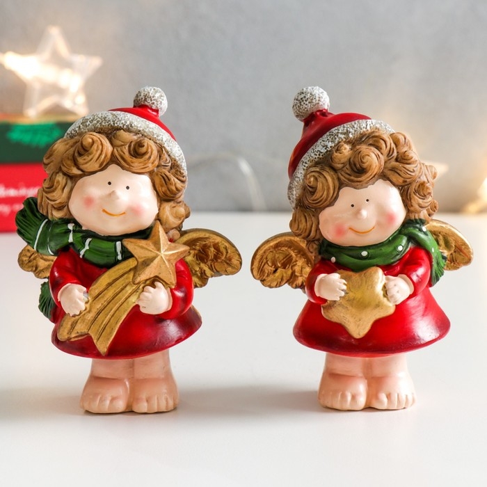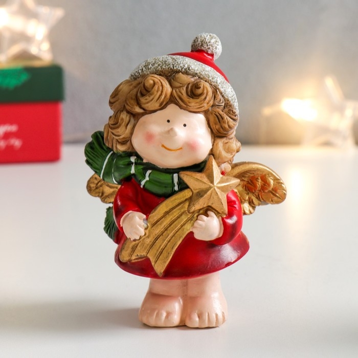 Сувенир полистоун "Кудрявый ангелочек с кометой/звездой" МИКС 7х5,5х10 см