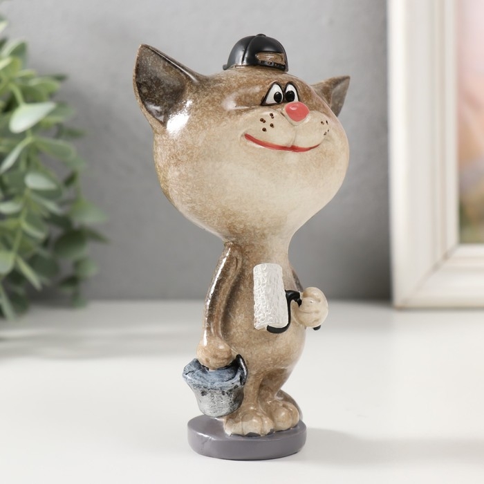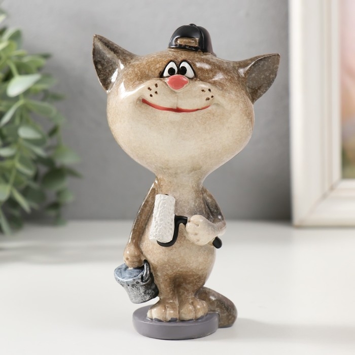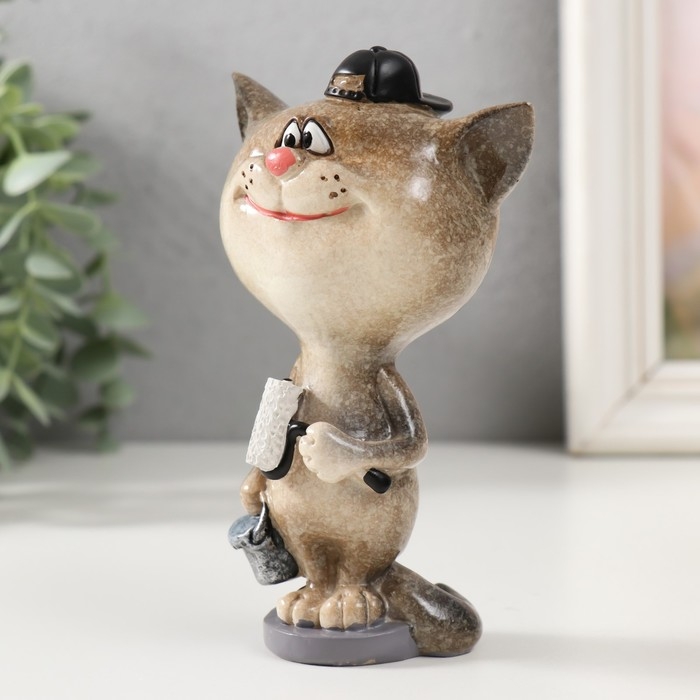 Сувенир полистоун лак "Котик-маляр" 8,2х6х13 см