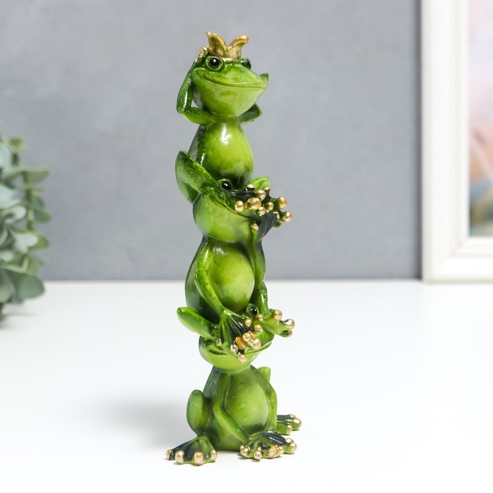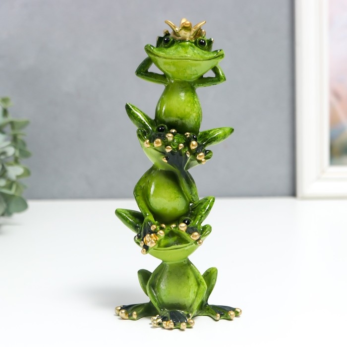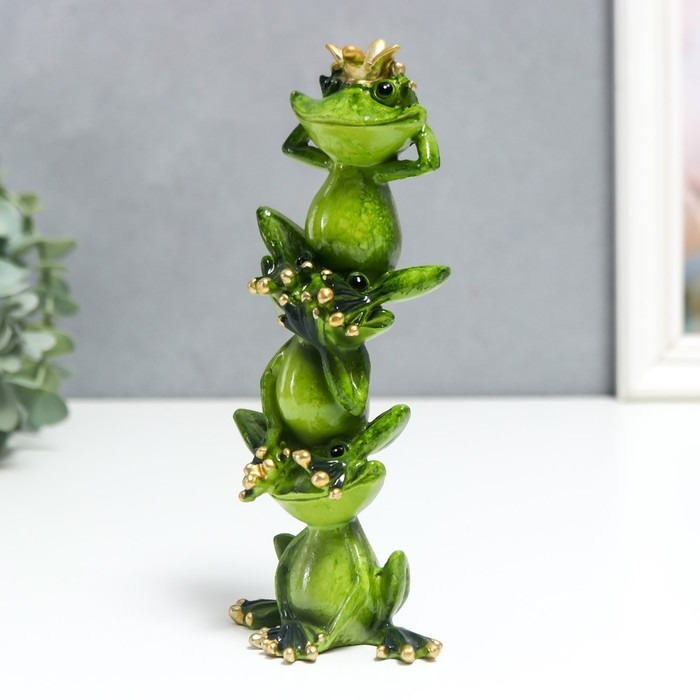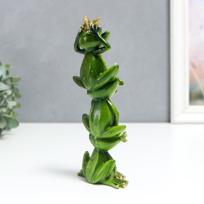 Сувенир полистоун лак "Лягухи пирамида с короной - не вижу, не слышу, не скажу" 19х5х8 см