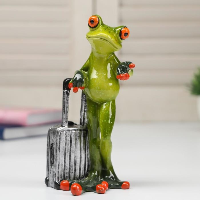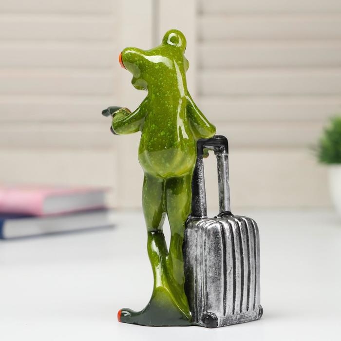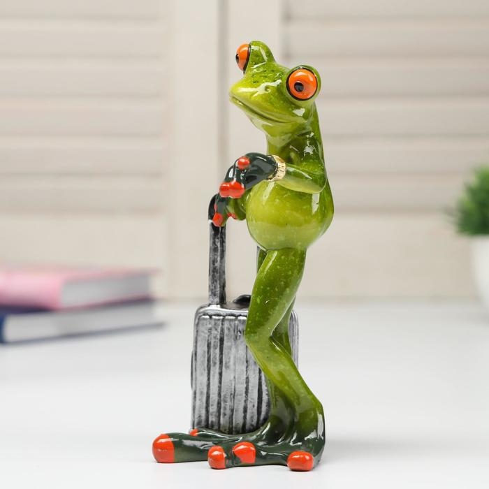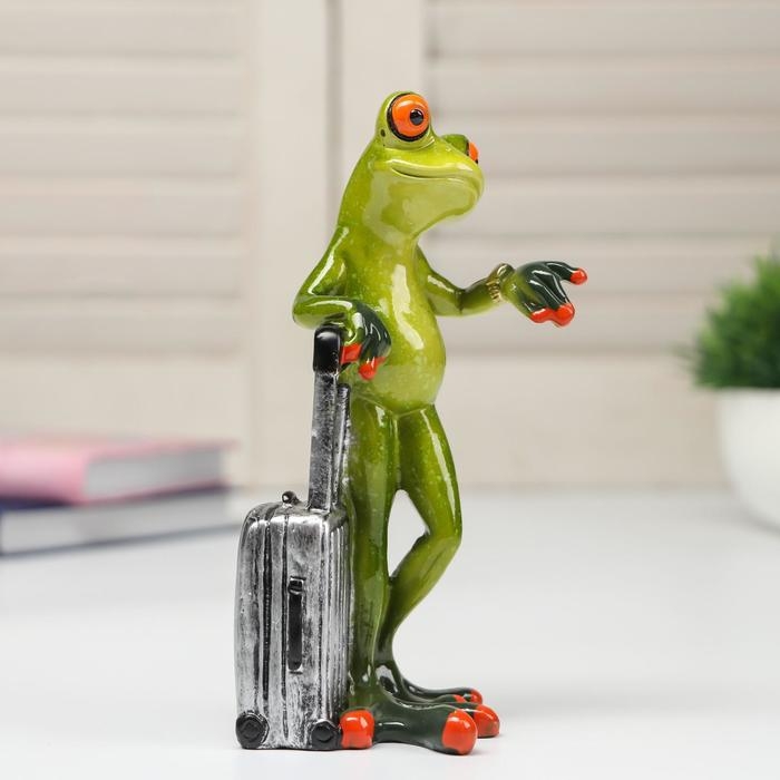 Сувенир полистоун лак "Лягушонок с чемоданом" 15,8х6,8х8,5 см