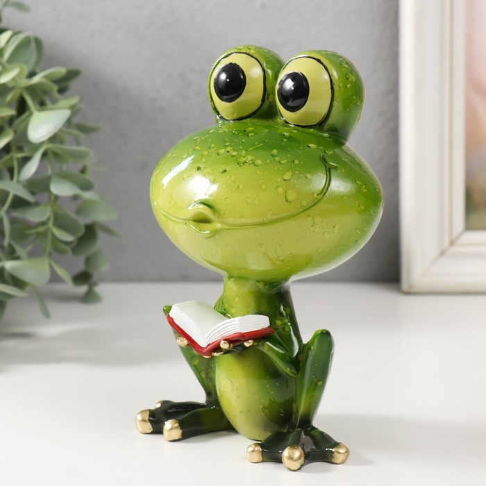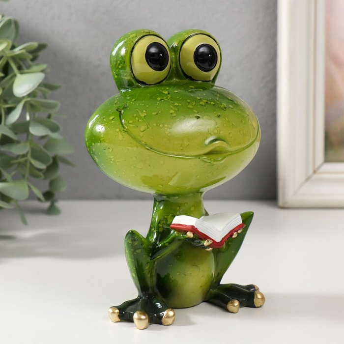 Сувенир полистоун лак "Лягушонок с книжкой" 10х7х15 см