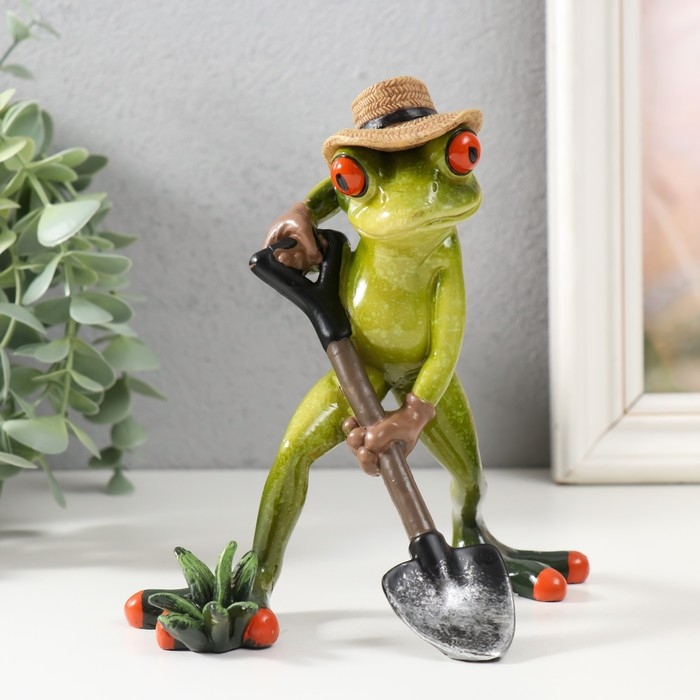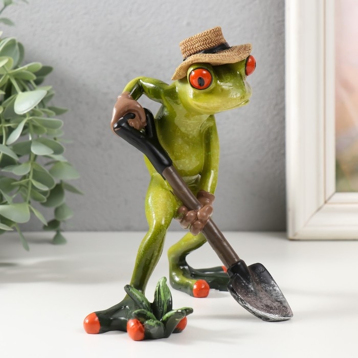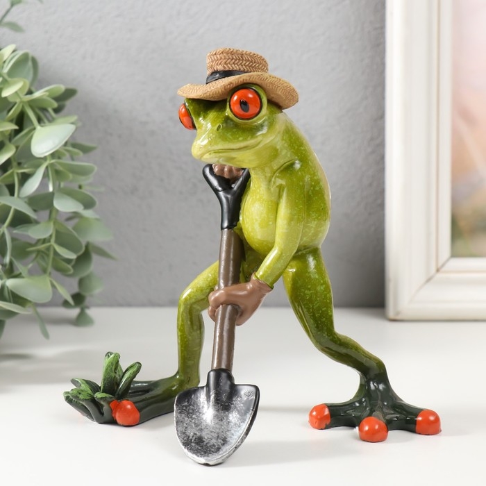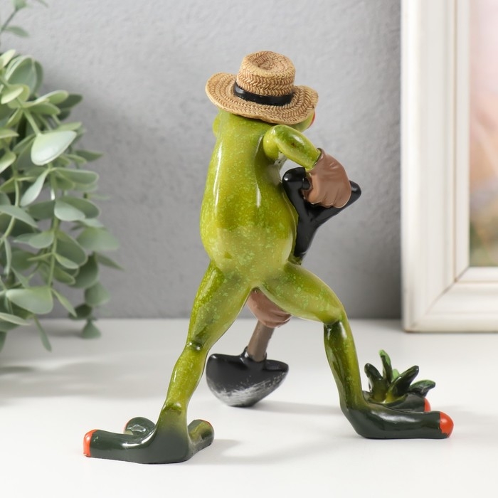 Сувенир полистоун лак "Лягушонок с лопатой, в соломенной шляпе" 10х15х15,5 см