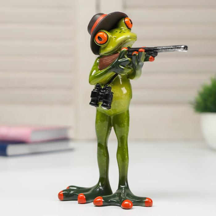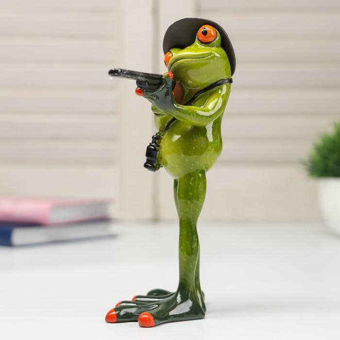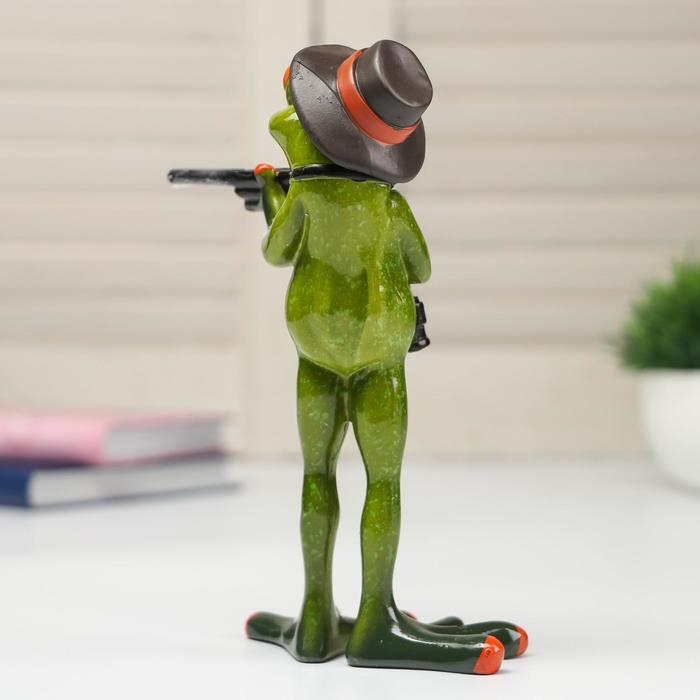 Сувенир полистоун лак "Лягушонок с ружьём" 17,5х5,3х13 см