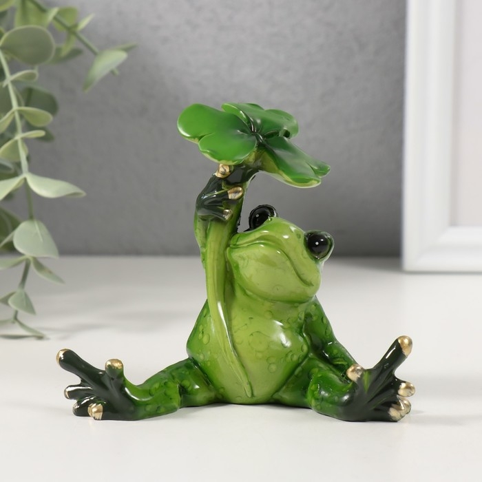 Сувенир полистоун лак "Лягушонок сидит под листиком" 8,8х5,5х8,5 см