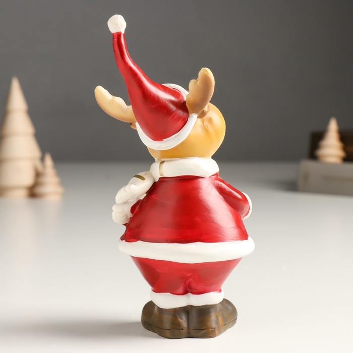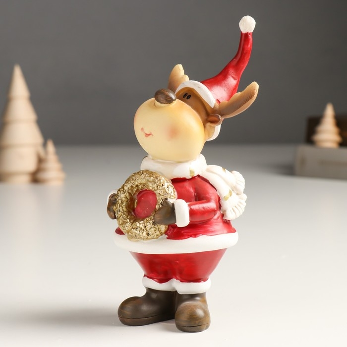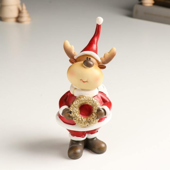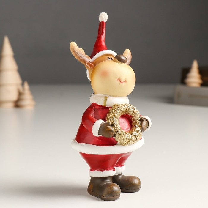 Сувенир полистоун "Лосик в красном кафтане и колпаке, с золотым венком" 8х6х16,5 см