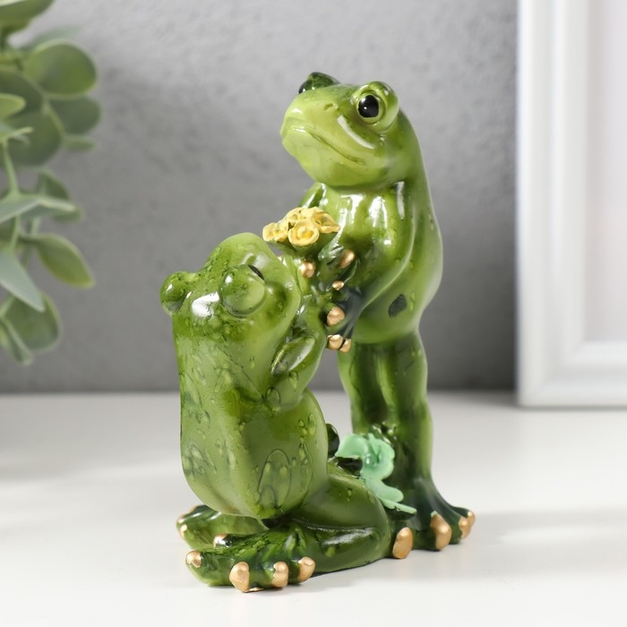 Сувенир полистоун "Лягушки с букетом" 5х12х12 см