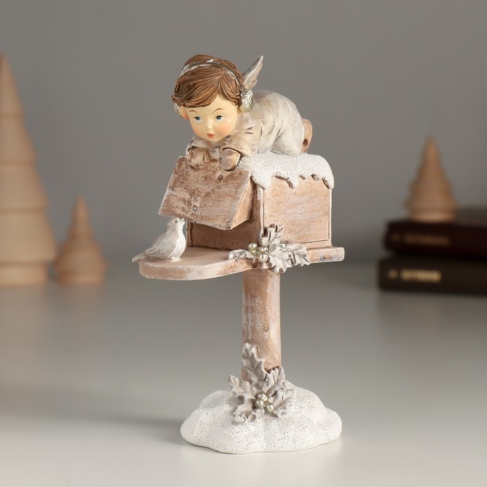 Сувенир полистоун "Любопытный ангелочек на почтовом ящике" 8,5х5х13 см