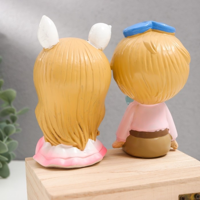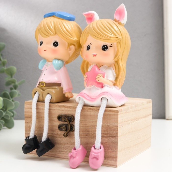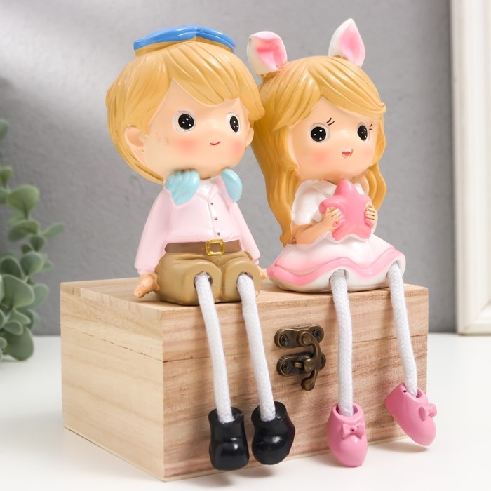 Сувенир полистоун "Мальчки в кепке и девочка с бантом" дл. ножки, набор 2 шт 6х7х17 см