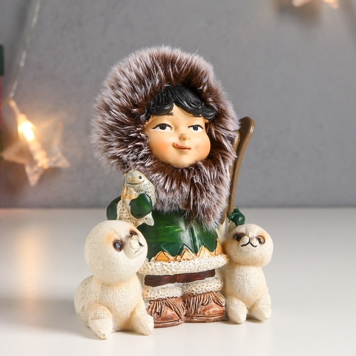 Сувенир полистоун "Малыш и морские котики - Север" 11х6х8,3 см
