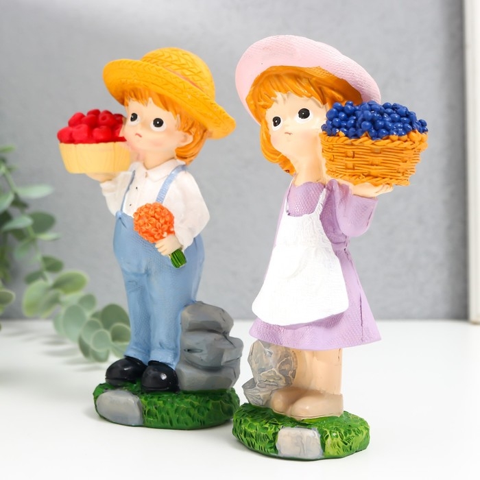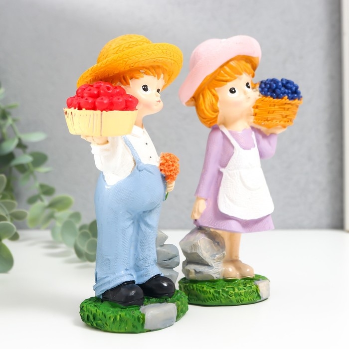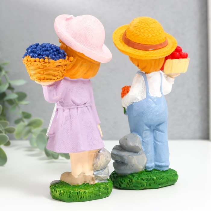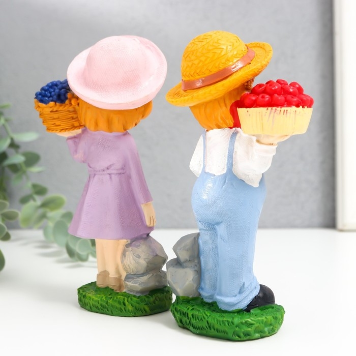 Сувенир полистоун "Малыш/Малышка с фруктами в корзине" набор 2 шт 15х8х5 см