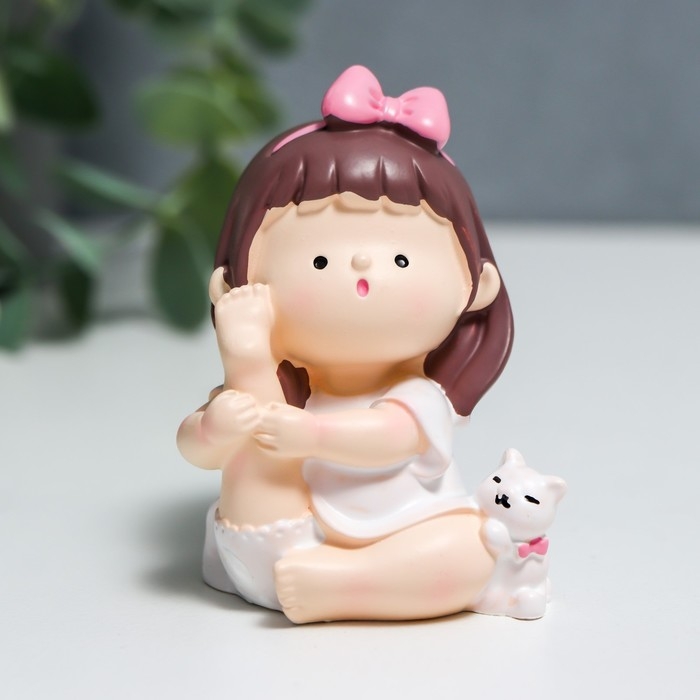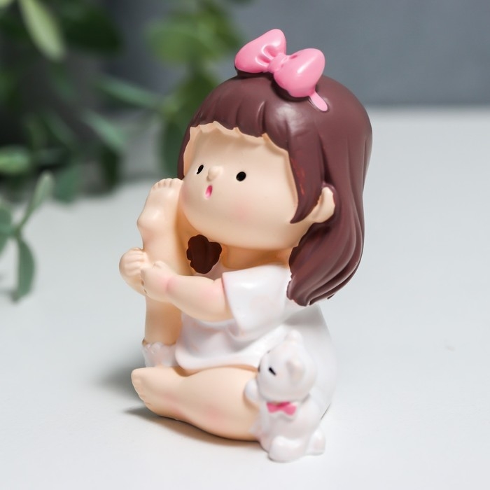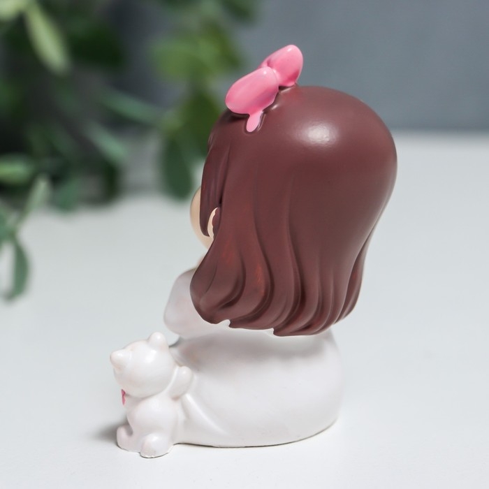 Сувенир полистоун "Малышка с белым котиком - йога" 5,5х4,5 см