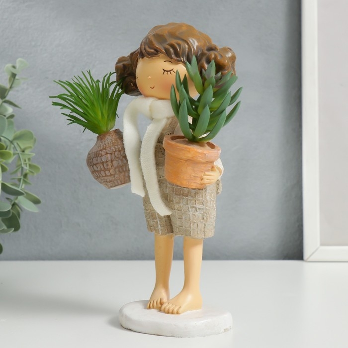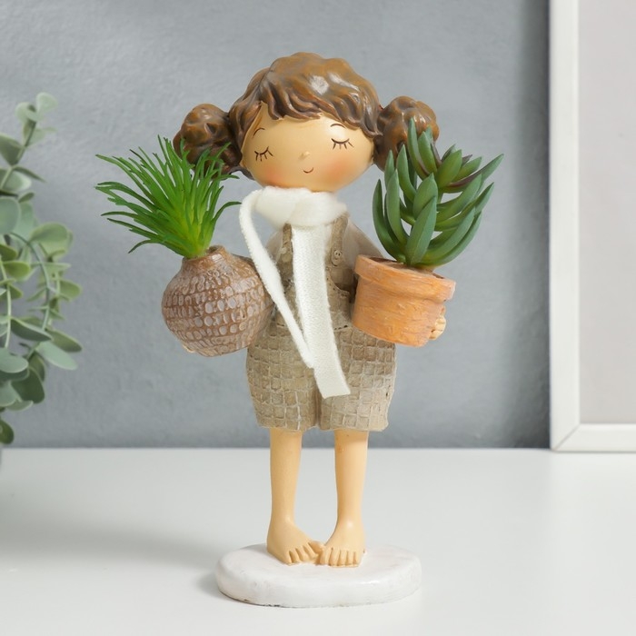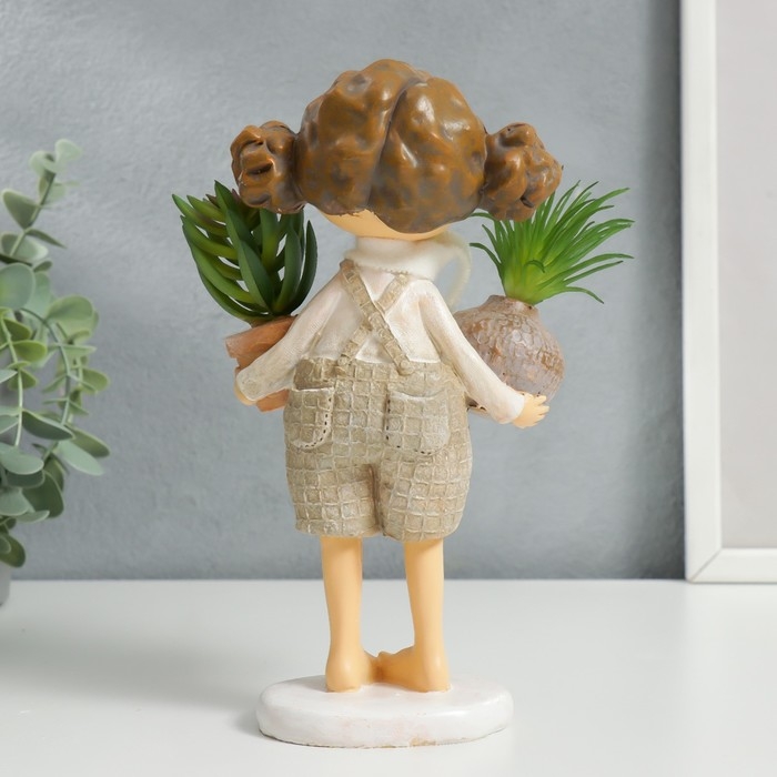 Сувенир полистоун "Малышка с хвостиками, с растениями в горшках" 20,5х8х10,3 см