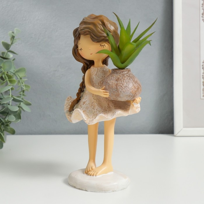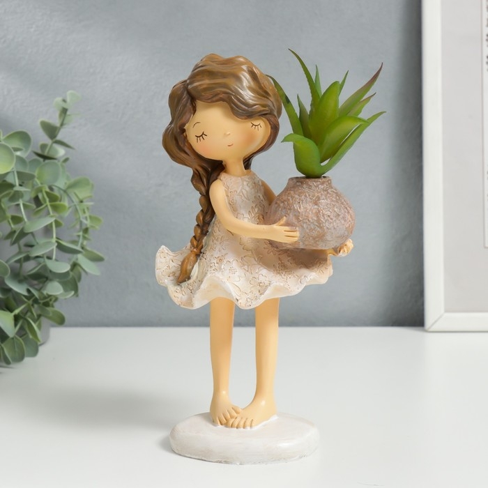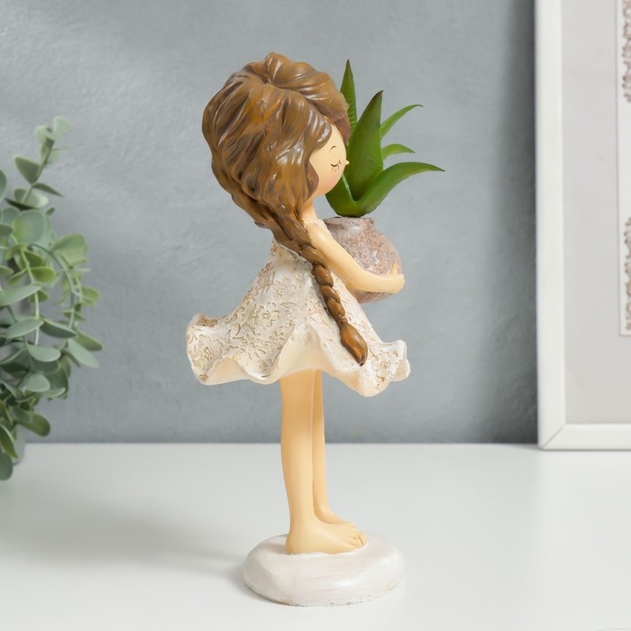 Сувенир полистоун "Малышка с косой, с растением в вазе" 21х9х11,3 см