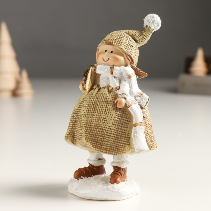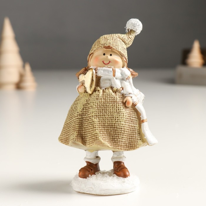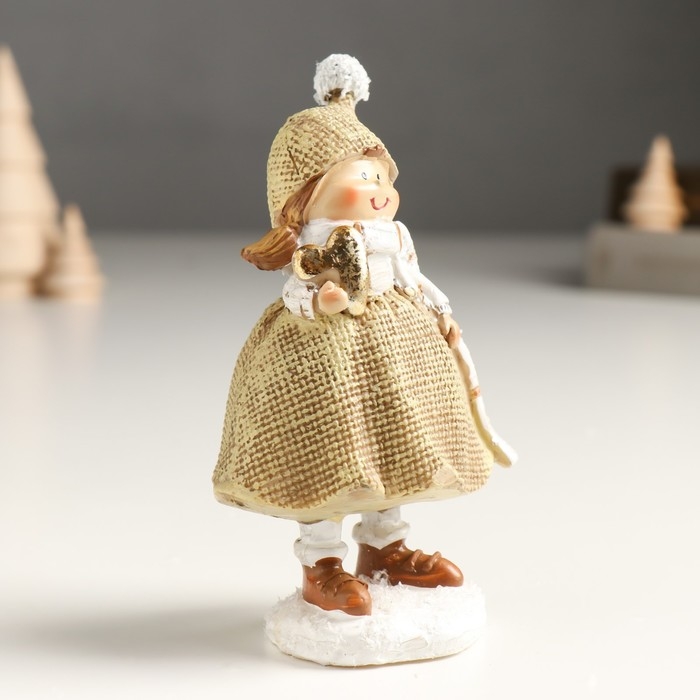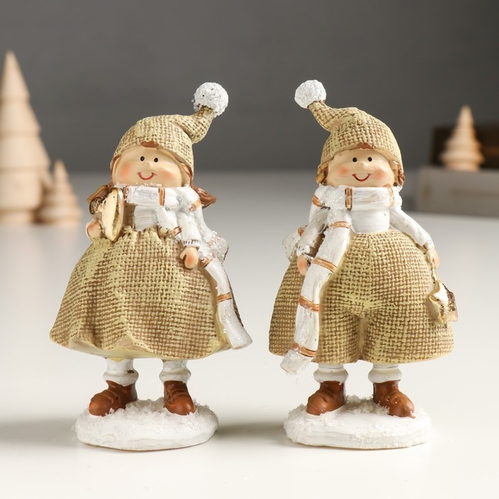 Сувенир полистоун "Малышка с сердцем/Малыш со звездой в бежевом наряде" МИКС 4х6,5х12 см