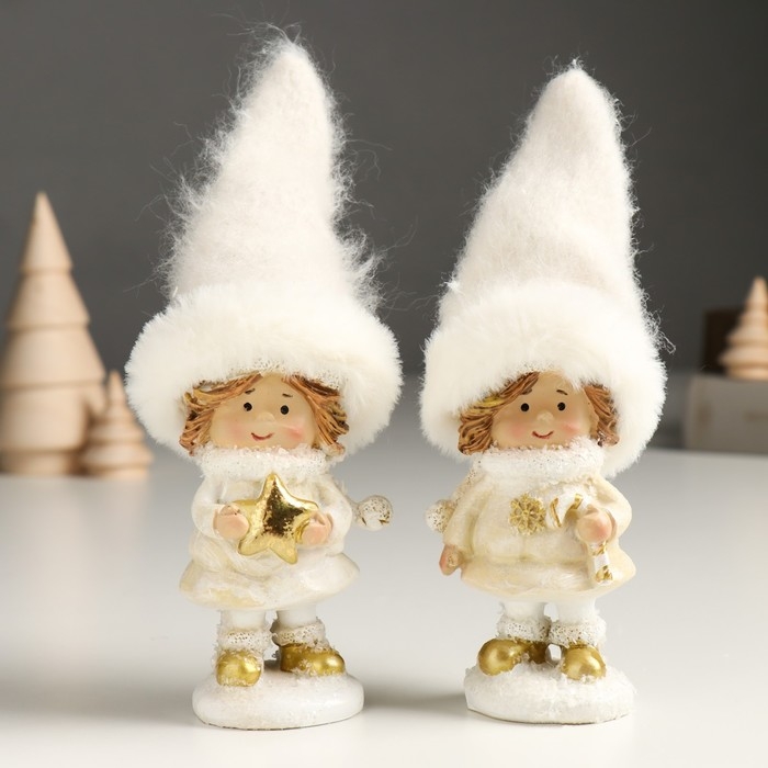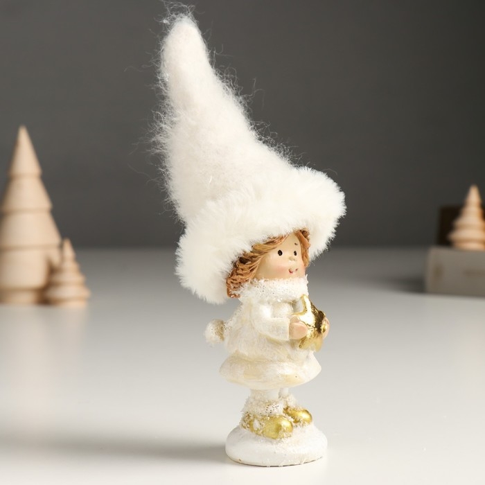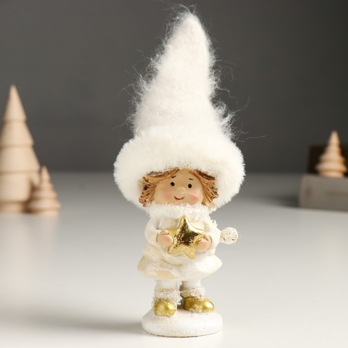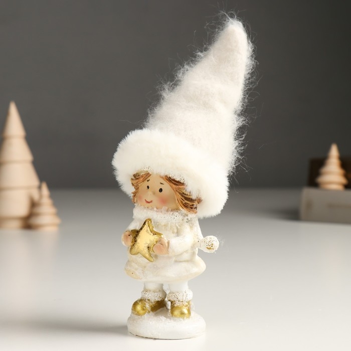 Сувенир полистоун "Малышка в белом наряде со снежинкой, с леденцом/звездой" МИКС 6х5х16 см