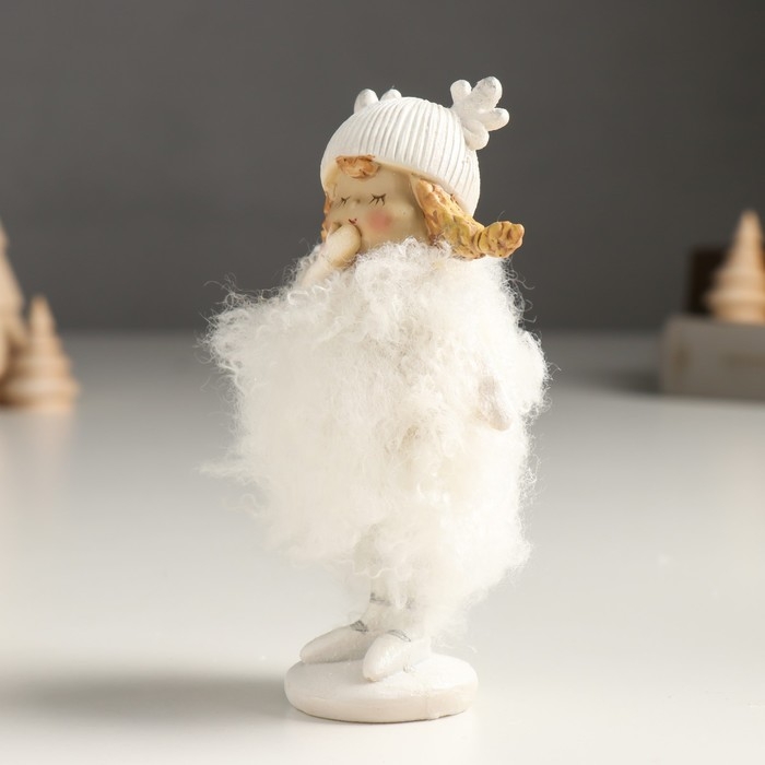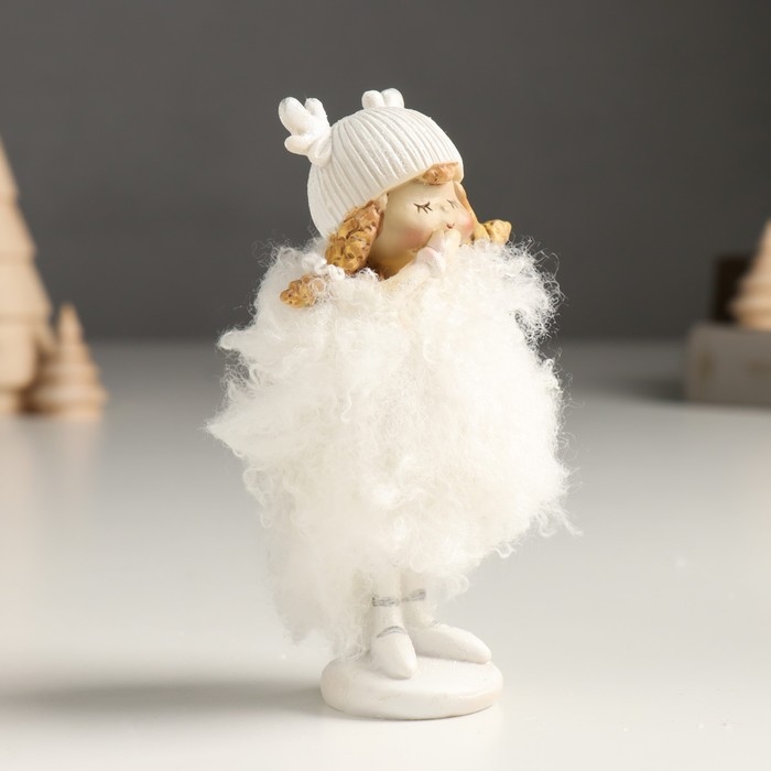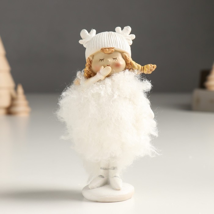 Сувенир полистоун "Малышка в белом пуховом платье в шапке с рожками" МИКС 6,5х6х12,5 см