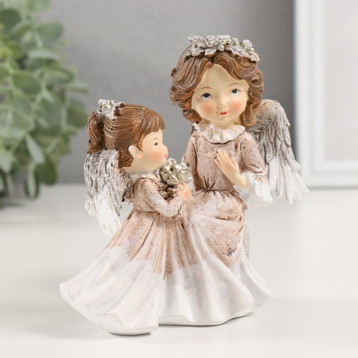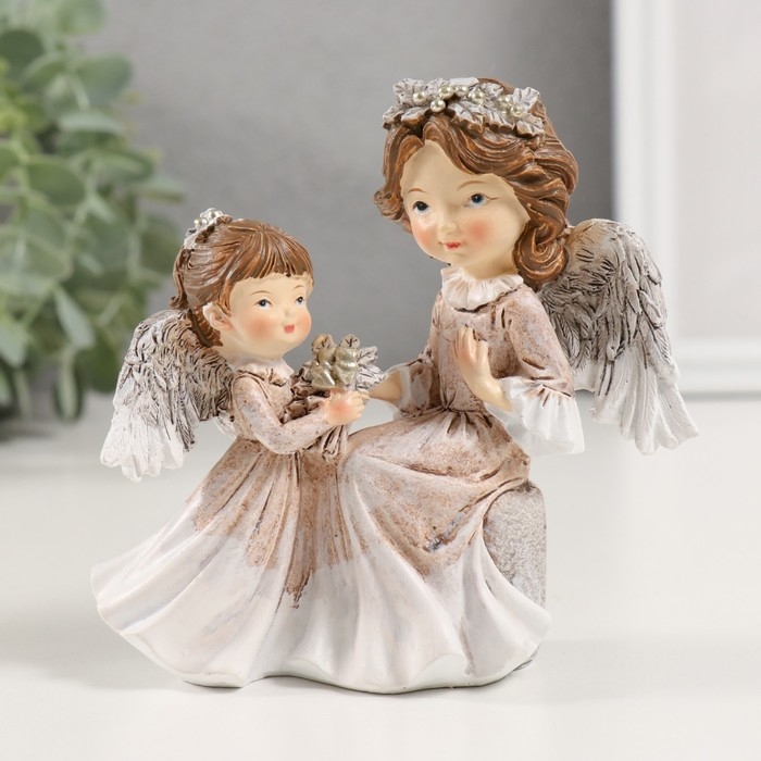 Сувенир полистоун "Мама-ангел с дочкой" 11,5х7х12 см