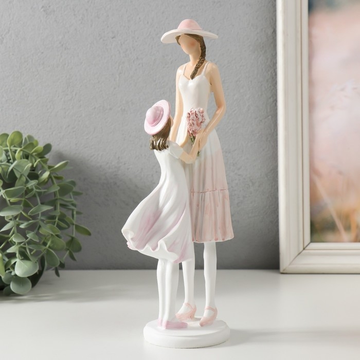 Сувенир полистоун "Мама с дочкой в шляпках" 9,5х7,5х26 см