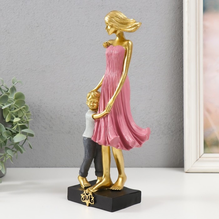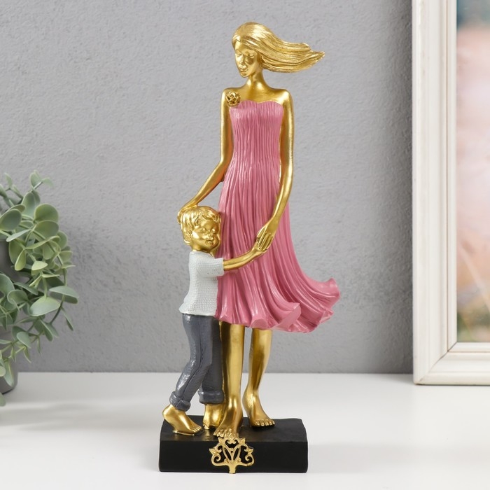 Сувенир полистоун "Мама с сыном" золото 9,5х7х28,5 см