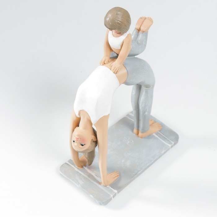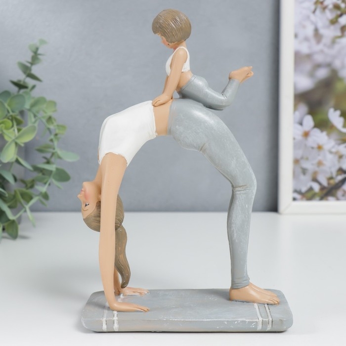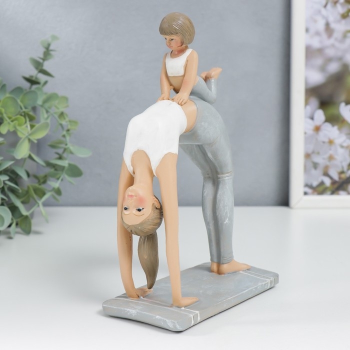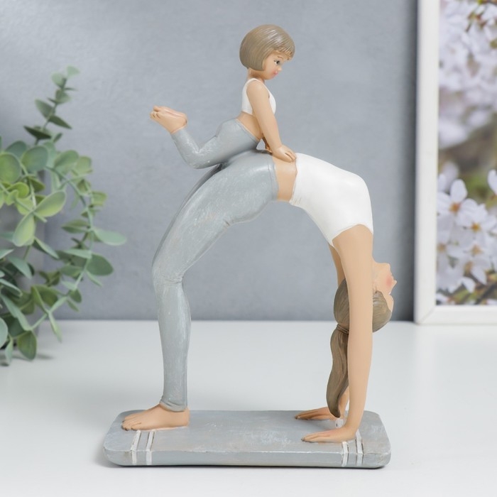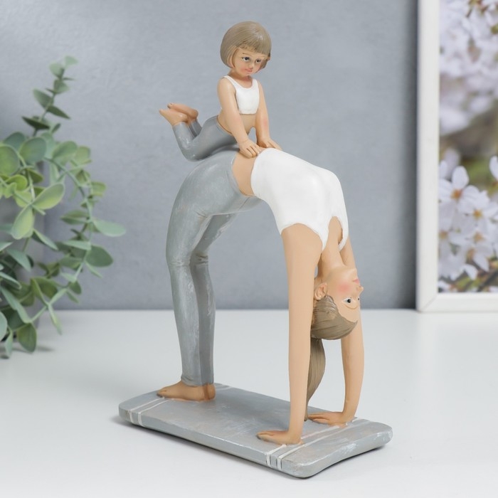 Сувенир полистоун "Мама в позе колеса, с дочкой" бело-серый 19х7х13 см